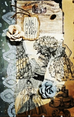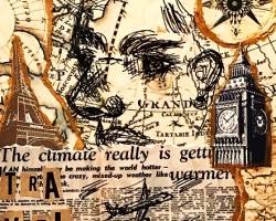 Once new compositions and imaginative depictions were successfully drafted as preliminary sketches, the Art students experimented with ‘prepared backgrounds’, which consisted of various torn papers that were either stained /or painted with tea, coffee, ink, water-colours and diluted acrylic paints. As seen within the student art examples provided below, the background colours of these Mixed Media artworks were executed in sombre monochromatic and neutral colours.