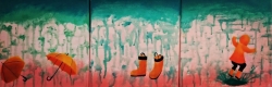 In the Triptych Painting Assignment, each Art student was given 3 square canvasses and the students had to create three-piece Triptych Paintings which either had to: a)-convey a conceptual theme from three different viewpoints; b)-tell a story in three consecutive parts; /or c)-convey a message through the application of three symbolic images, while making a personal statement about a specific topic.